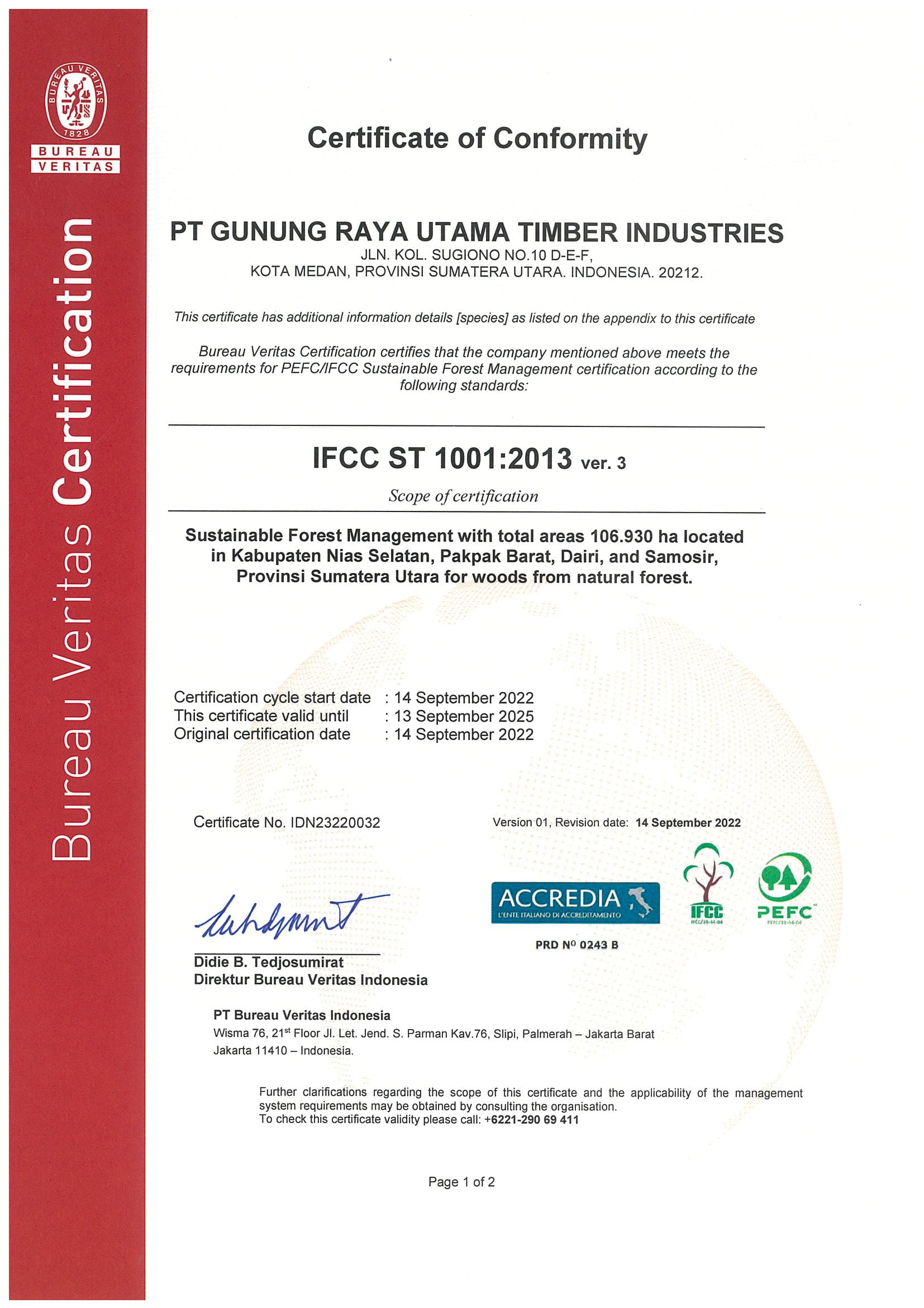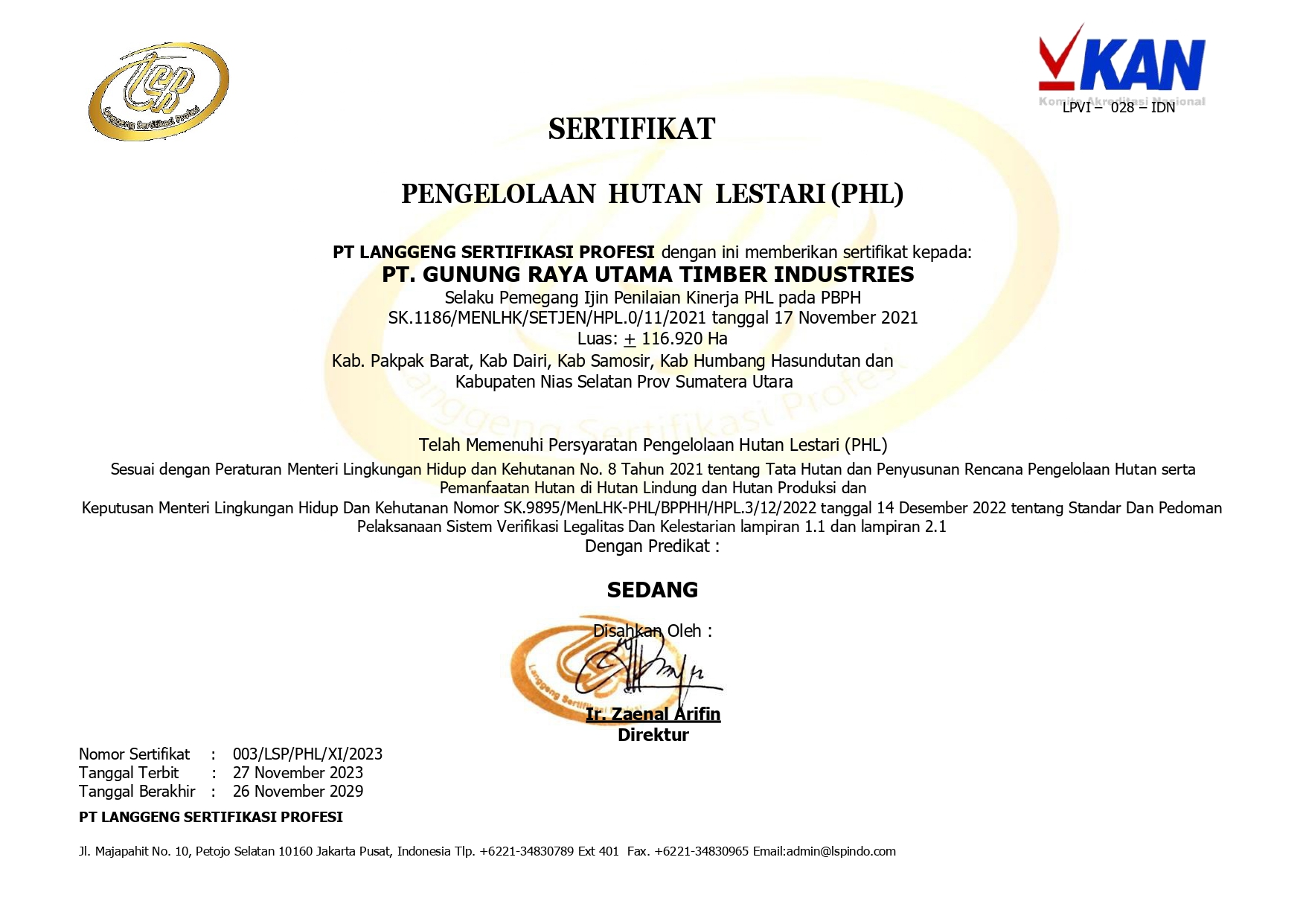 P.T. Gunung Raya Utama Timber Industries (GRUTI) didirikan pada tanggal 3 Juni 1978 dan sejak tanggal 20 Juni 1997 menjadi anak Perusahaan Mujur Group dengan kantor pusat di Jakarta dan kantor cabang di Medan dan juga memiliki Izin Usaha Pemanfaatan Hasil Hutan Kayu Pada Hutan Alam (IUPHHK-HA) seluas 106.930 hektar di Provinsi Sumatera Utara.